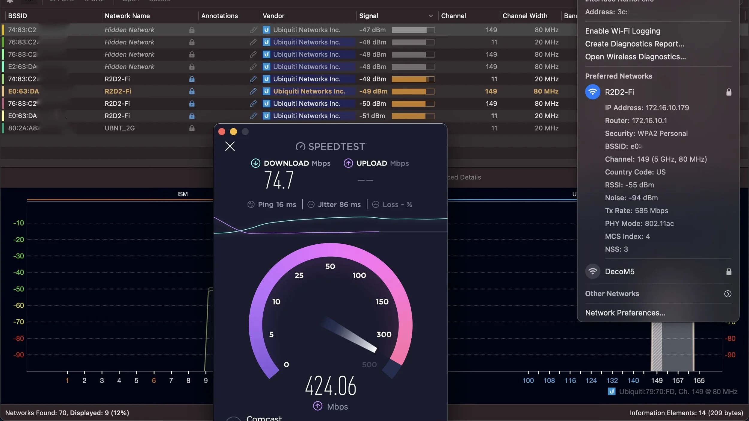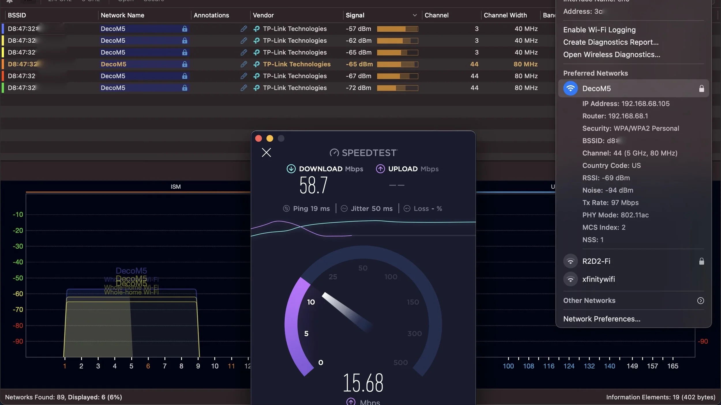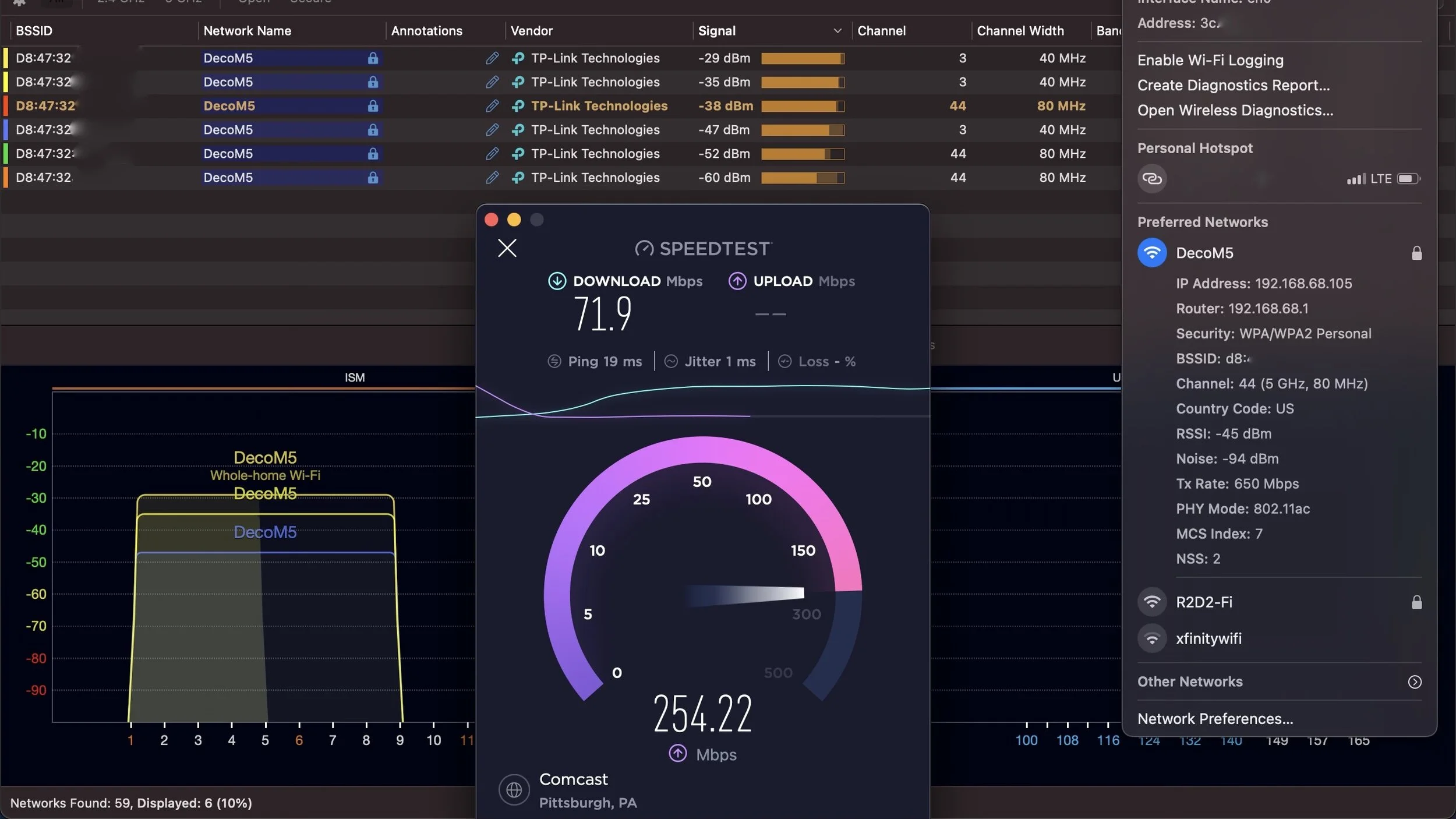 While roaming around my modestly-sized two story house, I saw all 3 nodes operating at maximum power. If I was able to, I would turn down the transmit power, or step down to only 2 rather than 3 units. With Wi-Fi, more transmit power isn’t always better. Despite the Deco units being a bit too loud, It was able to handle all the extra power well. I never noticed any clients joining the wrong AP, or staying connected to one further away. Both of those things happened to me with the truly terrible Netgear Nighthawk MK62. In that regard, the Deco M5 was the best low-cost mesh system I’ve tested.