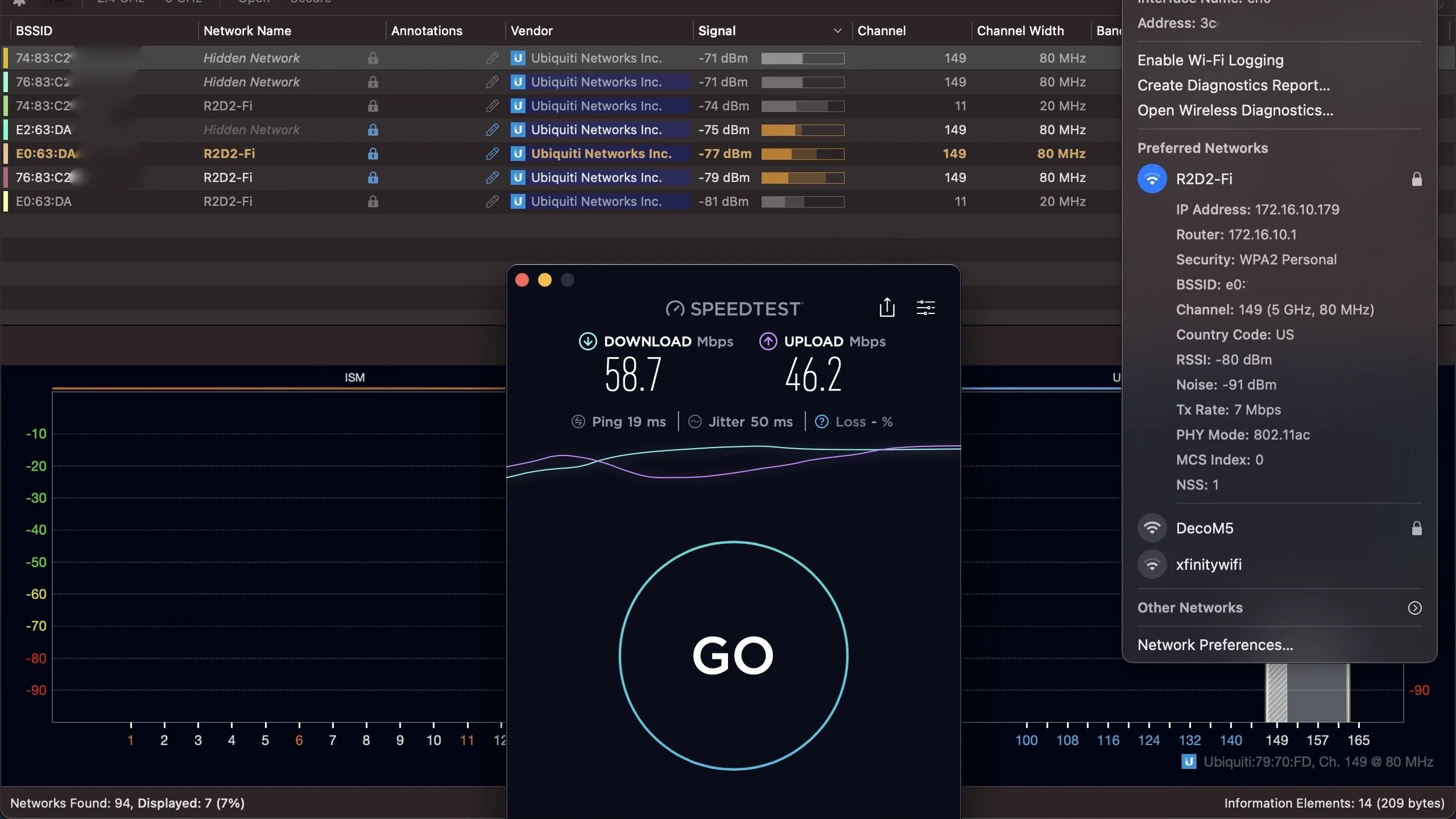 The bottom line is that all wireless transmissions are best effort, and come with comprimises. With mesh networks and wireless backhaul, you will notice worse performance when you’re not connected to the main access point. If possible, always run Ethernet cabling to your access points. This prevents one of the wireless hops, and will dramatically increase throughput and reduce airtime usage. With that out of the way, let’s talk about how the dual-band Deco M5 performs as a wireless mesh.